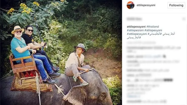 آتیلا پسیانی بازیگر سینما و تلویزیون در صفحه اینستاگرام تصویری از خود در حال فیل سواری منتشر کرد.