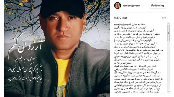 رکنا: رامبد جوان در اینستاگرام خود از آرزوی های خود گفت.