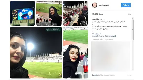 ساره بیات در استادیوم فوتبال، تیم محبوبش را تشویق کرد! + عکس