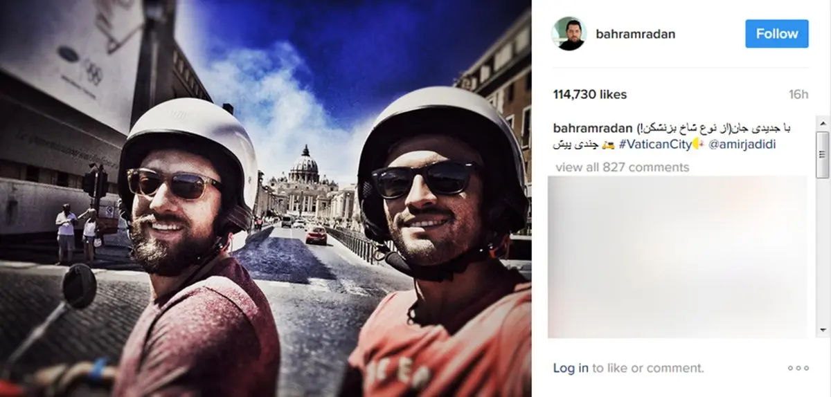 رکنا: بهرام رادان عکسی جالب از خودش به همراه امیر جدیدی را در صفحه اینستاگرامش منتشر کرد که نشان می دهد روی موتور نشسته اند و در خارج از ایران هستند.