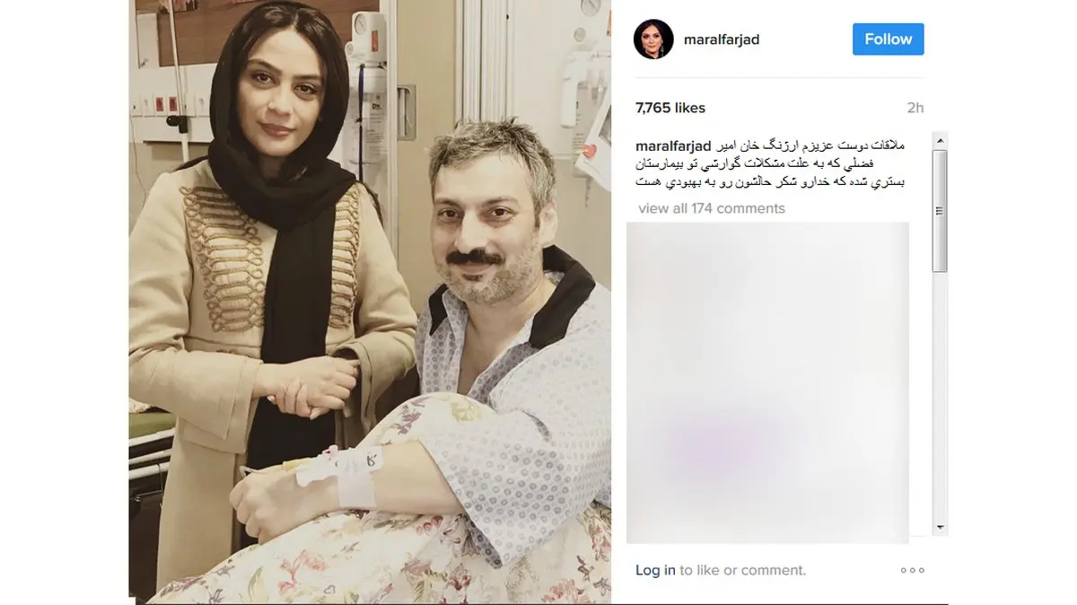 بازیگر زن معروف به ملاقات ارژنگ امیرفضلی در بیمارستان رفت+عکس