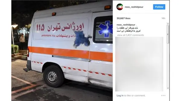 رضا رشیدپور، مجری تلویزیون با انتشار تصویرهایی از خودروهای آمبولانس و آتش نشانی که اثر انفجار ترقه و نارنجک روی آن دیده میشود در صفحه اینستاگرام خود، اعتراضش نسبت به آن چه در شب چهارشنبه سوری گذشت را نشان داد.