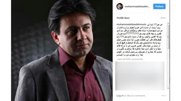 رکنا: محمد علیزاده در پی خبر درگذشت افشین یداللهی پستی را در اینستاگرام منتشر کرد.