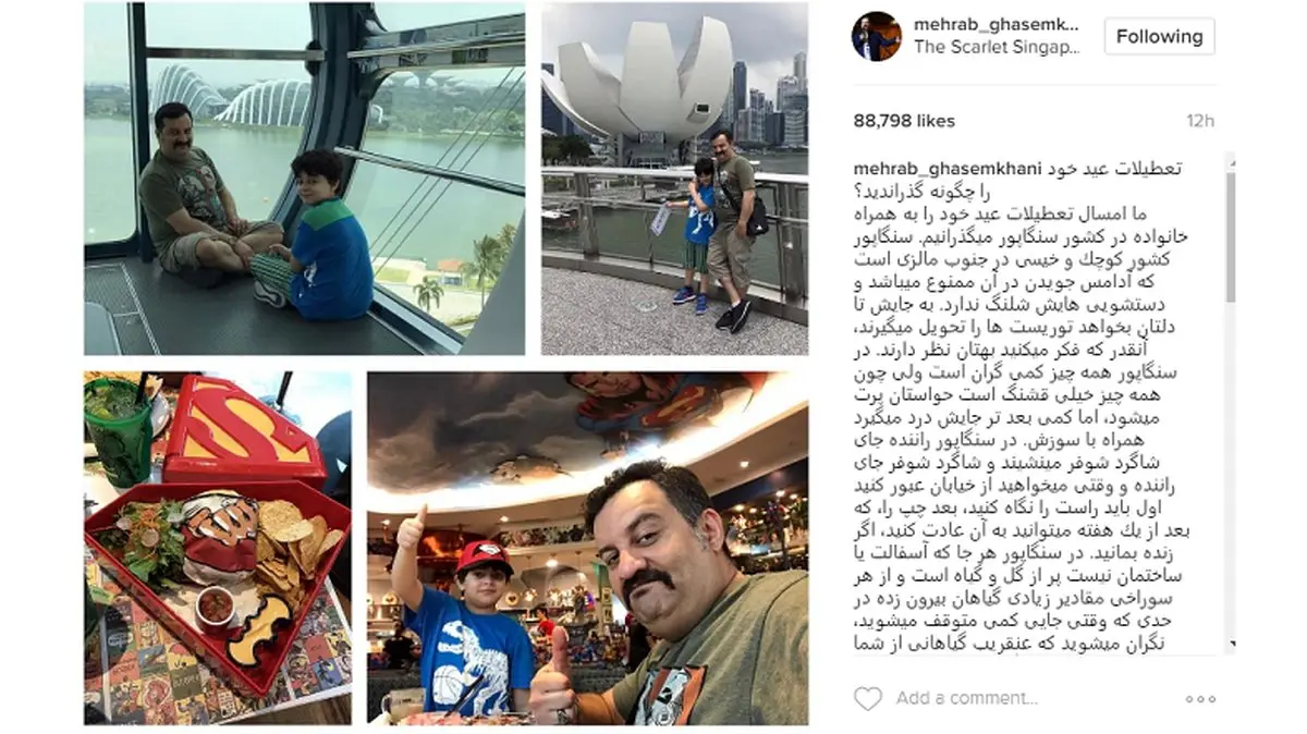 رکنا: مهراب قاسم خانی در صفحه اینستاگرامش تصویری از مسافرت نوروزی همراه با خانواده اش را منتشر کرد.