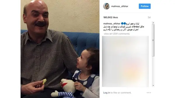 به گزارش خبرگزاری رکنا، مهناز افشار با انتشار عکس زیر در صفحه اینستاگرامش نوشت: لیانا و عمو ایرج