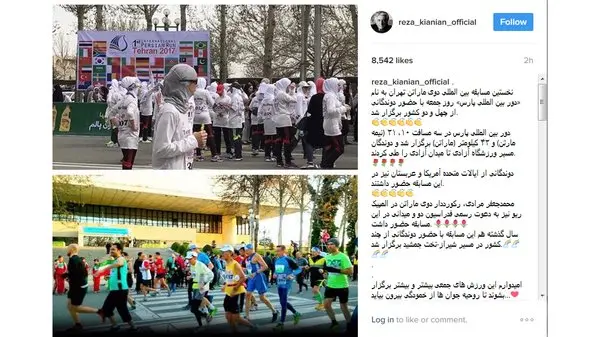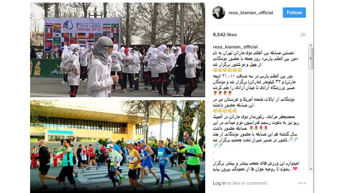 رکنا: رضا کیانیان از مسابقات مسابقات بین المللی دوی ماراتن در تهران که برای اولین بار اتفاق افتاد حمایت کرد.