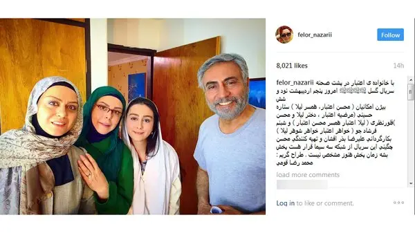 وی در توضیح این عکس نوشت: با خانواده اعتبار در پشت صحنه سریال گسل امروز پنجم اردیبهشت نود و شش.