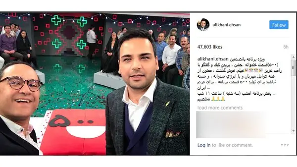 رکنا: احسان علیخانی با انتشار پستی در اینستاگرام از حضورش در برنامه خندوانه خبر داد.