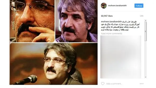 رکنا: محسن تنابنده به مناسبت روز معلم متنی برای علیرضا نادری در صفحه اینستاگرامش منتشر کرد.