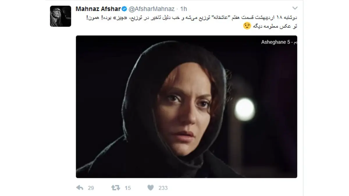 رکنا: مهناز افشار تصویری از خودش در سریال «عاشقانه» در توییتر منتشر کرد و درباره تاخیر در توزیع سریال توضیح کوتاهی داد.