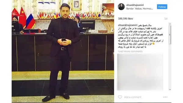 وی با انتشار این عکس در اینستاگرام خود در توضیح آن نوشت: