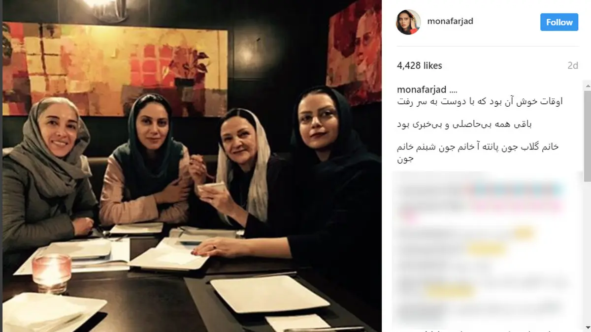 سلفی پانته آ پناهی ها در کنار مونا فرجاد، گلاب آدینه و شبنم فرشاد جو در یک کافه رستوران. شبنم روزهای خود را طوری تقسیم و برنامه ریزی کرده که به همان تعداد که با مارال فرجاد عکس میگیرد، با مونا هم بگیرد تا خدایی ناگرده کدورتی پیش نیاید. برای ورود به کانال تلگرام ما کلیک کنید.