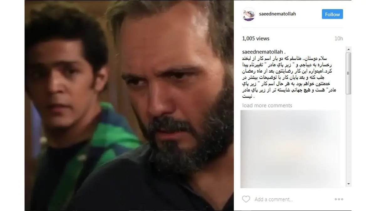 رکنا: سعید نعمت الله در انتشار پستی در اینستاگرام خبر از تغییر نام سریالش برای دومین بار خبر داد.