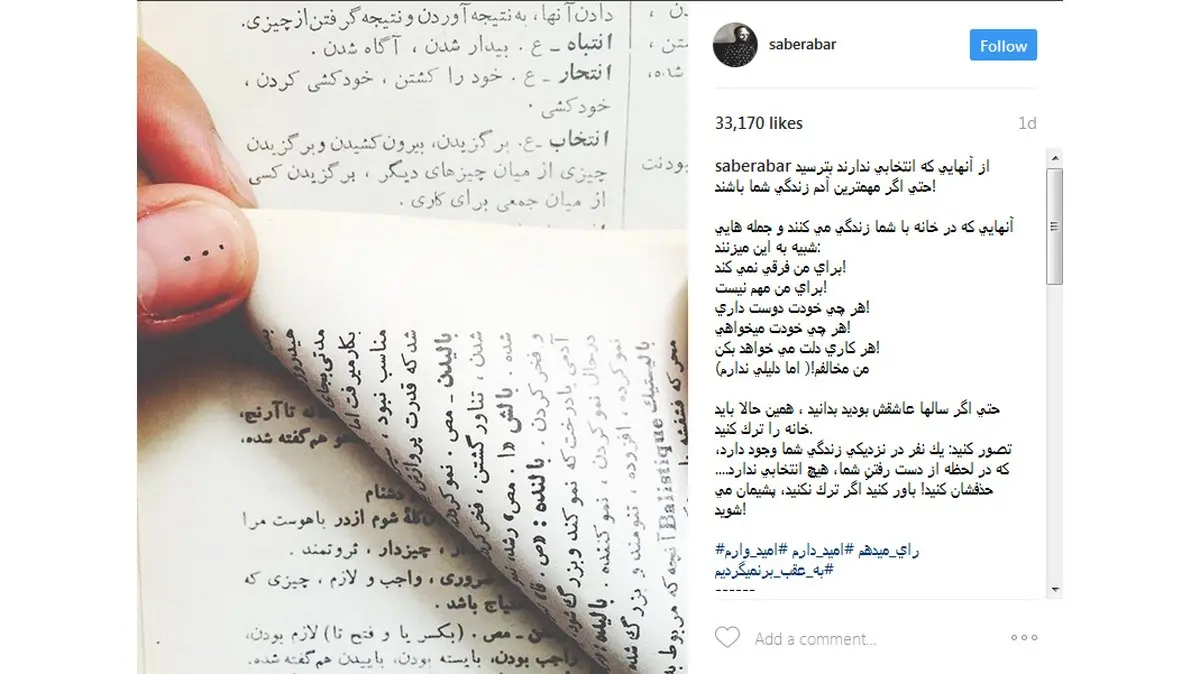 رکنا: صابر ابر، بازیگر معروف سینما در اینستاگرام خود، پُست انتقادی خطاب به کسانی که در انتخابات ریاست جمهوری شرکت نمی کنند، نوشت.