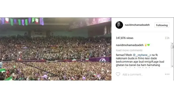 واکنش نوید محمدزاده به حضور هواداران روحانی در ورزشگاه آزادی