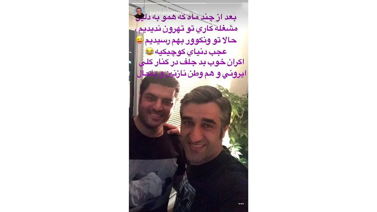 رکنا: پژمان جمشیدی عکسی از خود به همراه سام درخشانی که برای اکران فیلم خوب بد جلف به کانادا رفته اند در استوری اینستاگرام خود منتشر کرد.