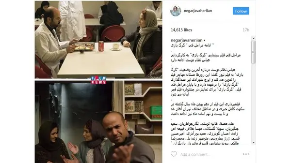 رکنا: نگار جواهریان توضیحاتی از فیلم گرگ بازی در اینستاگرام خود منتشر کرد.