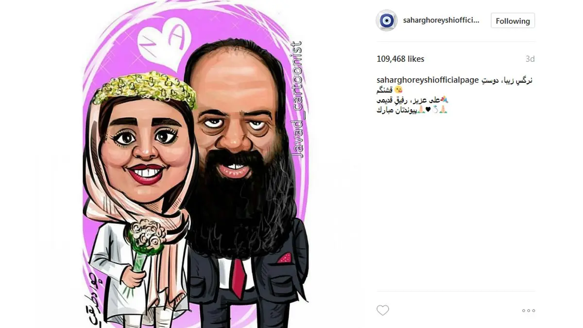 رکنا: سحر قریشی در صفحه اینستاگرام خودش ازدواج نرگس محمدی و علی اوجی رو به صورتی متفاوت و با انتشار کاریکاتوری از این زوج تبریک گفت.