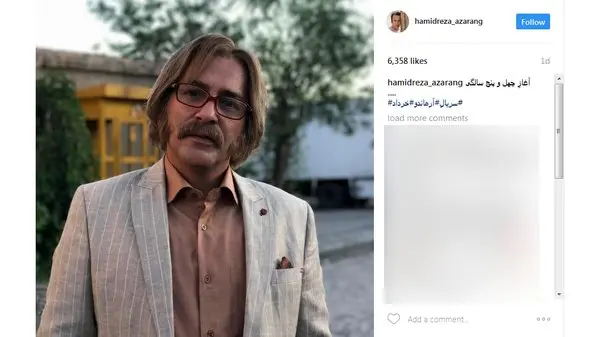 رکنا: حمیدرضا آذرنگ عکسی از گریم جدیدش در اینستاگرام منتشر کرد.