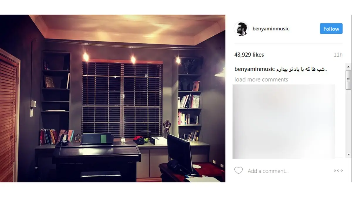 رکنا: بنیامین بهادری عکسی از اتاق کارش در اینستاگرام منتشر کرد.