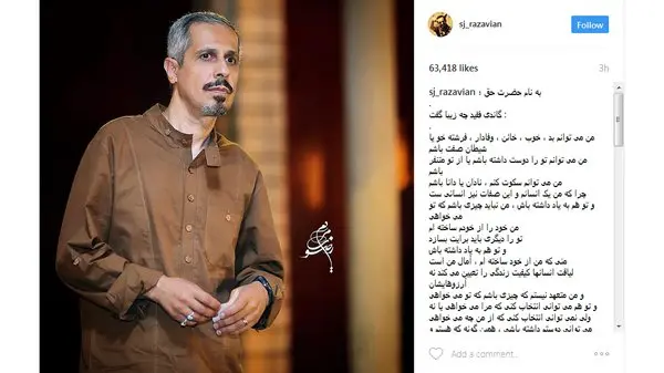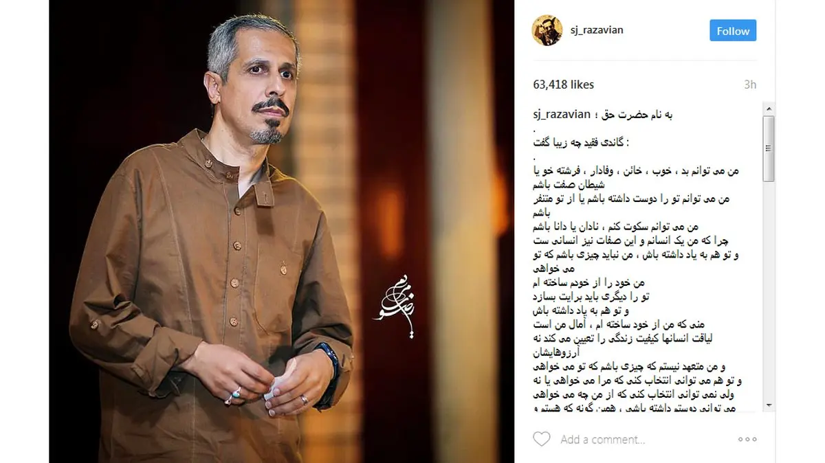 رکنا: جواد رضویان عکس زیر و سخنی از گاندی را در صفحه اینستاگرامش منتشر کرد.