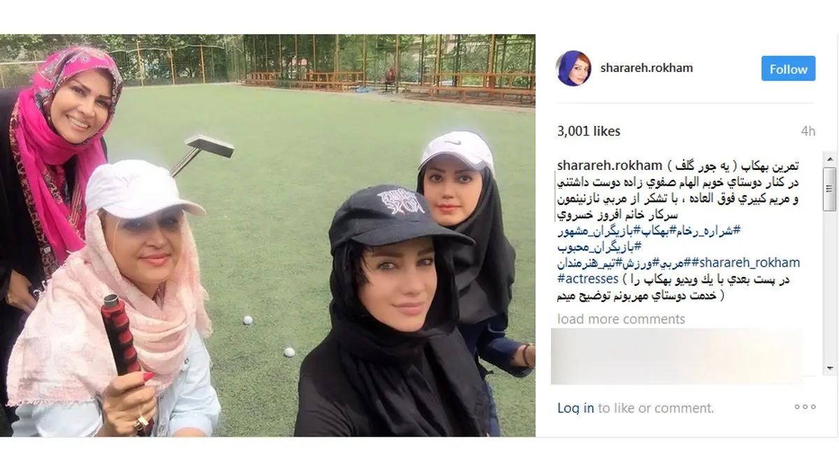 رکنا: شراره رخام عکسی از خود در حال بازی گلف منتشر کرد.