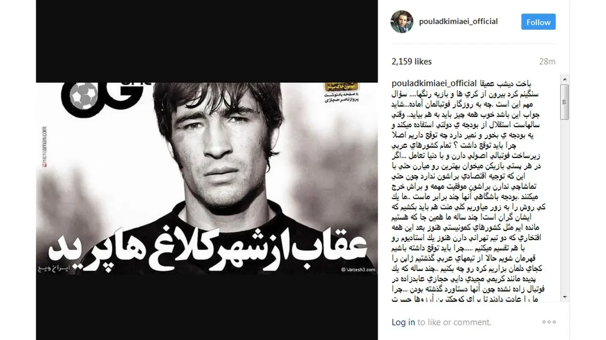 رکنا: پولاد کیمیایی با انتشار یک پست واکنش خود را به شکست سنگین استقلال نشان داد.