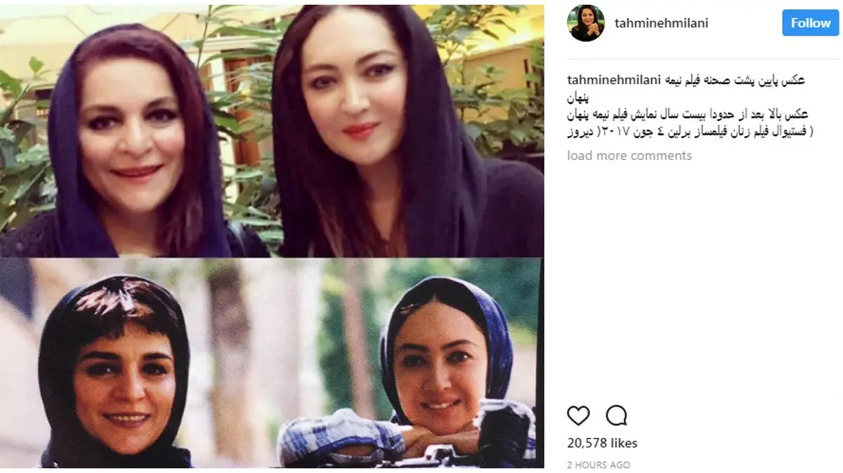 تهمینه میلانی با انتشار دو عکس از خود و نیکی کریمی در صفحه اینستاگرامش که یکی متعلق به اکنون و دیگری متعلق به ۲۰ سال پیش است نوشت: « عکس پایین پشت صحنه فیلم «نیمه پنهان»، عکس بالا بعد از حدودا بیست سال هنگام نمایش فیلم «نیمه پنهان» در فستیوال فیلم فیلمسازان زن ایرانی در برلین ۴ جون ٢٠١٧( دیروز )»