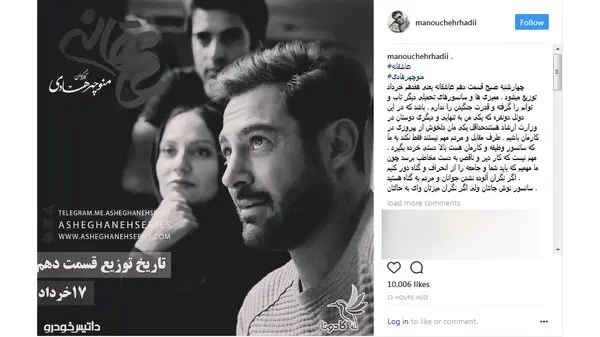 رکنا: منوچهر هادی در صفحه اینستاگرام خود درباره سانسورهای متعدد سریالش نوشت.