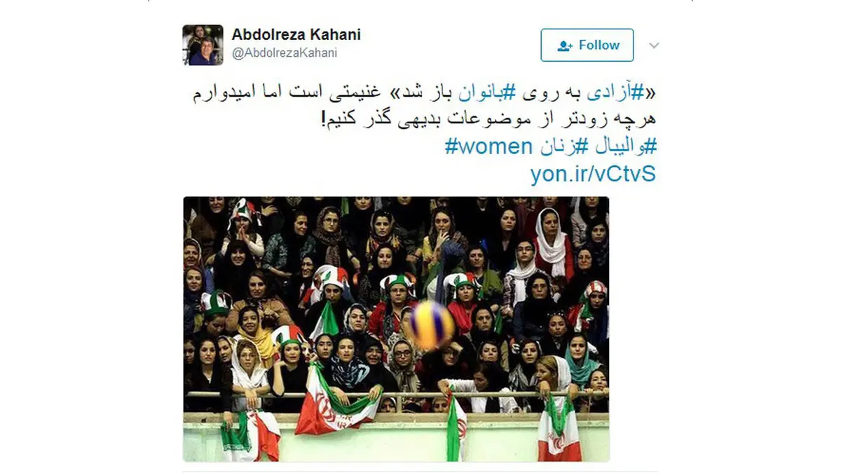 واکنش توییتری عبدالرضا کاهانی به حضور بانوان در ورزشگاه آزادی+ عکس