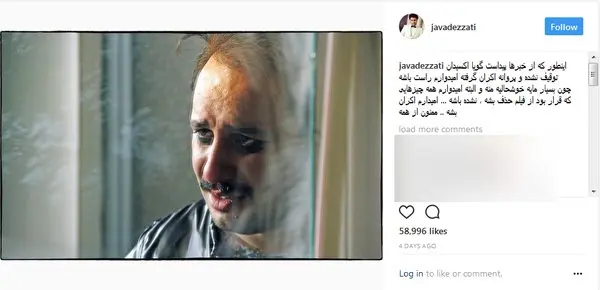 رکنا: جواد عزتی با انتشار پستی در اینستاگرام خوشحالی خود را از توقیف نشد فیلم اکسیدان به کارگردانی حامد محمدی منتشر کرد.