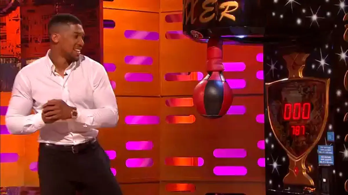 رکنا: آنتونی جاشوا در برنامه تلویزیونی با هنرمندان معروفی به زور آزمایی پرداخت.