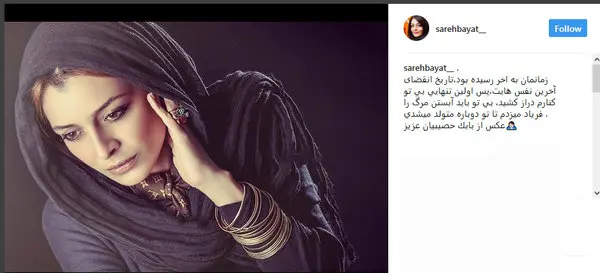 وی در توضیح این پست نوشت: زمانمان به آخررسیده بود.تاریخ انقضای آخرین نفس هایت.پس اولین تنهایی تو کنارم دراز کشید. بی تو باید آبستن مرگ را فریاد می زدم تا تو دوباره متولد می شدی.