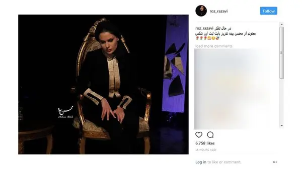 رکنا: رز رضوی عکسی از خود در حال تفکر در اینستاگرام خود منتشر کرد.