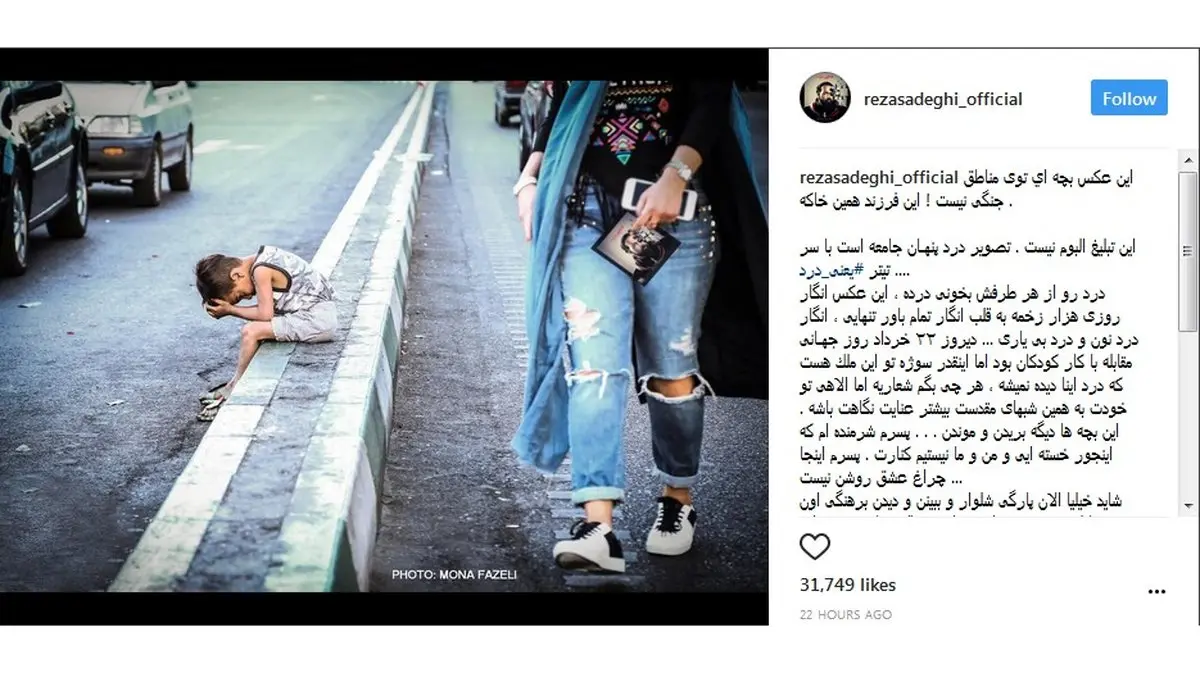 رکنا: رضا صادقی با انتشار پستی در اینستاگرام از شرمندگی خود گفت.