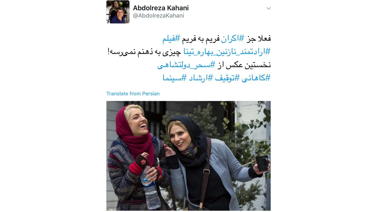 رکنا: عبدالرضا کاهانی با انتشار عکس جدیدی از فیلم «ارادتمند نازنین، بهاره، تینا» نسبت به توقیف این فیلم واکنش نشان داد.
