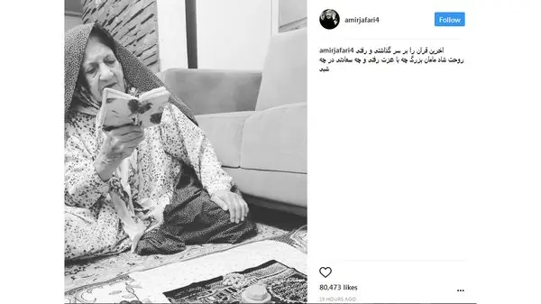 رکنا: امیر جعفری که این روز ها در بازی سریال شهرزاد 2 است با انتشار پستی در اینستاگرام از درگذشت مادربزرگش خبر داد.