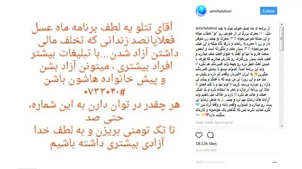 وی در توضیحات این پست نوشت: