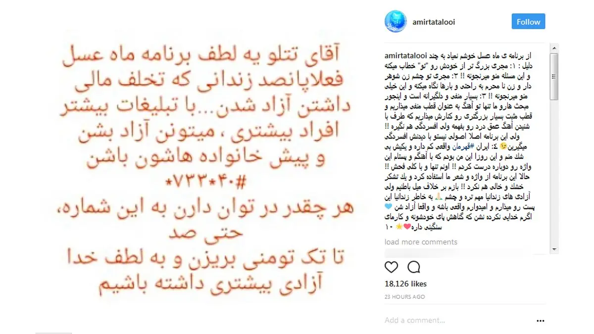 انتقاد تند امیر تتلو از برنامه ماه عسل / این برنامه از واژه و شعر ما استفاده کرد و یک تشکر خشک و خالى هم نکرد!+ عکس