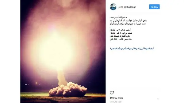 رکنا: رضا رشیدپور اقدام سپاه پاسداران انقلاب اسلامی در حمله موشکی به مواضع گروه تروریستی داعش را ستایش کرد.