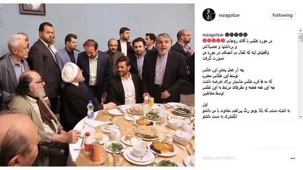 رکنا: محمدرضا گزار در مورد عکسی که به همراه رئیس جمهور گرفته بود و حاشیه های زیادی را به همراه داشت با اننتشار یک پست در اینستاگرامش توضیحاتی ارائه داد.