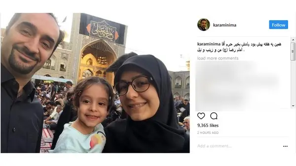 رکنا: نیما کرمی عکسی از خود به همراه همسرش و فرزندش در حرم امام رضا در اینستاگرامش قرار داد.
