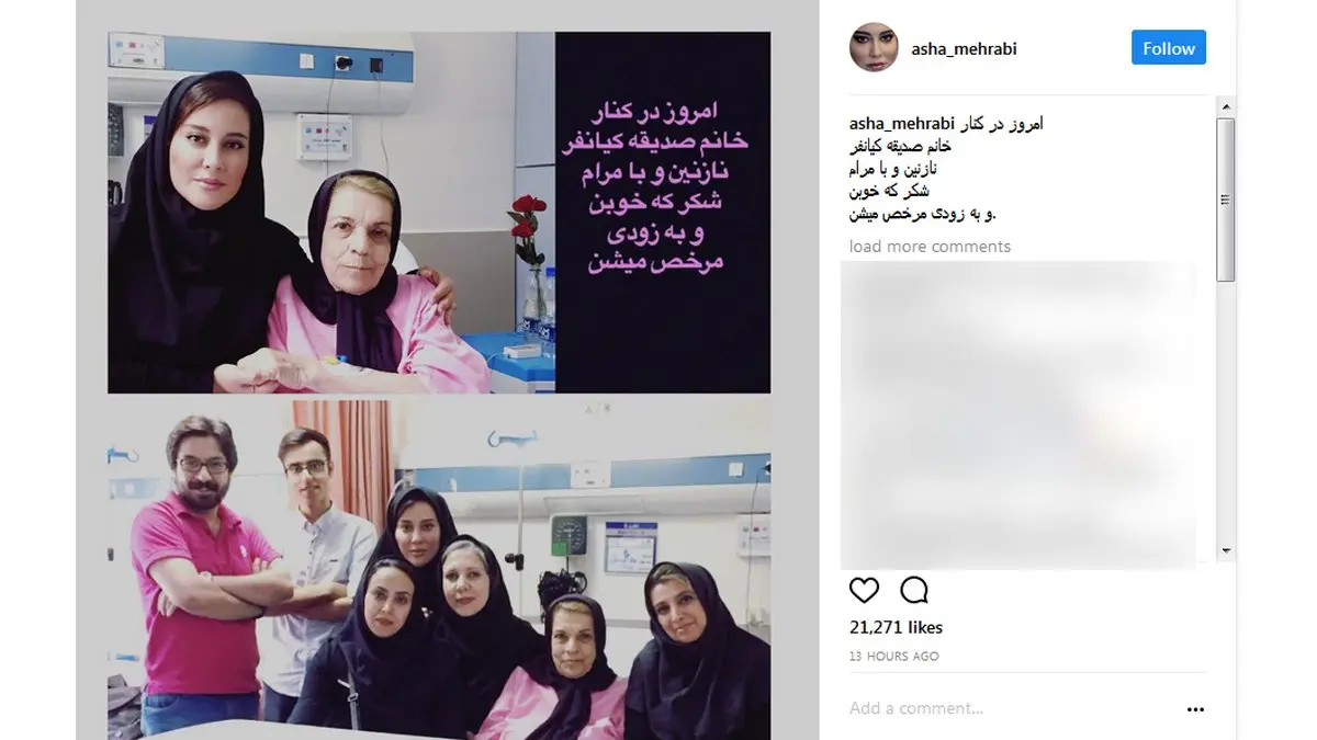 رکنا: آشا محرابی عکسی از خود و صدیقه کیانفر در اینستاگرامش قرار داد.