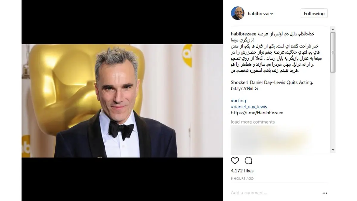 رکنا: حبیب رضایی با انتشار یک پست خبر از خداحافظی دانیل دی لوئس داد.