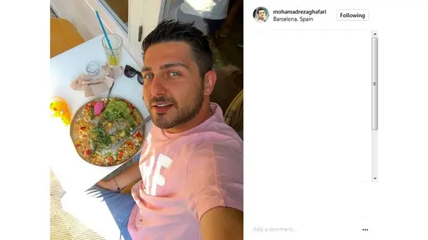 رکنا: محمدرضا غفاری یک سلفی با غذای خودش در اینستاگرام قرار داد.