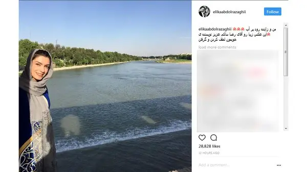 رکنا: الیکا عبدالرزاقی عکسی از خود در کنار رود زاینده رود در اینستاگرامش قرار داد.