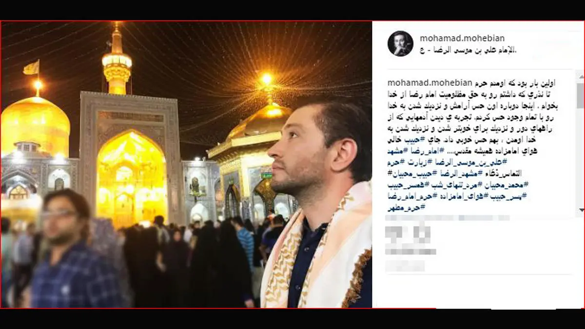 محمد محبیان پسر حبیب خواننده قدیمی کشور که خودش هم مدتی در آمریکا به حرفه خوانندگی پرداخته، اینستاگرامش را با عکسی ار حضورش در حرم امام رضا (ع) برای ادای نذرش به روز کرد.