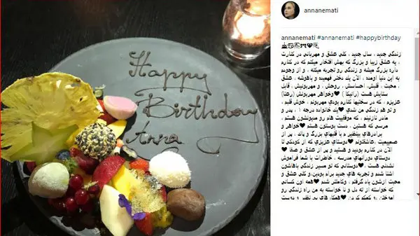 رکنا: اناهیتا نعمتی با انتشار کیک تولدش از دوستانش تشکر کرد.