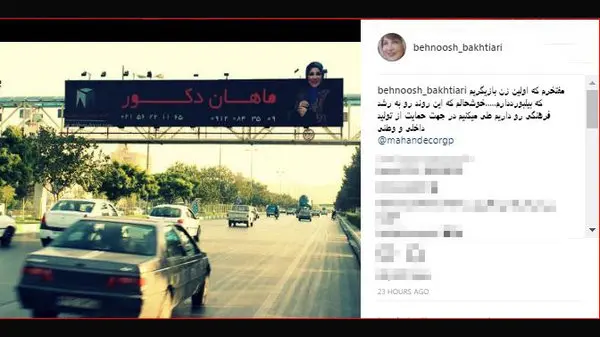 مفتخرم که اولین زن بازیگریم که بیلبورد دارم.....خوشحالم که این روند رو به رشد فرهنگی رو داریم طی می کنیم در جهت حمایت از تولید داخلی و وطنی.برای ورود به کانال تلگرام ما کلیک کنید.