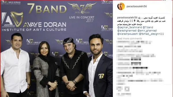 رکنا: پرستو صالی عکسی از حضور خود در کنسرت سون در کنار 2 تن از خوانندگان این گروه و یکی از نموزیسین های آن ها منتشر کرد.